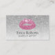 Makeup Artist Pink Lips Modern Silver Glitter Appointment Cards.