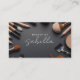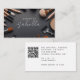A modern minimalist makeup artist business card, featuring a script typography, and makeup artists tools of the profession on a charcoal gray background. QR code and social media on the back of the card. A simple chic style.