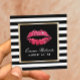 Makeup Artist Red Lips Modern Black Stripes Square Business Card
