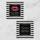 Makeup Artist Red Lips Modern Black & White Stripes Square Business Cards.