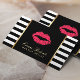 Makeup Artist Red Lips Modern Black White Stripes Business Card