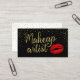 Makeup Artist Red Lips Modern Gold 3D Script Salon Business Cards.