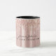 This luxury mug template features rose gold and blush pink metallic faux foil under sparkling glitter dripping. Customizable black details and personalized background image.