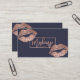 An elegant modern, stylish and simple makeup artist business card with elegant script hand lettering style typography with faux rose gold frame and lips on a navy blue customizable background. A simple and professional design