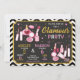 Get ready to sparkle and shine with this chic and stylish glamour makeup birthday invitation! Featuring adorable pink cosmetics, perfume, lipstick, nail polish, and makeup brushes set against a bold black background with a dazzling gold glitter frame, this design is perfect for a fabulous shared celebration.