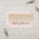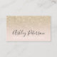 An elegant modern, stylish makeup artist business card with elegant modern simple hand lettering style typography in white on a faux light gold glitter and blush pink trendy and elegant background. all text is customizable, add your social media.