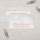 An elegant modern, stylish makeup artist business card with elegant modern simple hand lettering style typography on a pearl nacre iridescent holographic and blush pink trendy and elegant background. all text is customizable, add your social media.