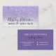 An elegant modern, stylish makeup artist business card with elegant modern simple hand lettering style typography in white on a faux purple lavender glitter and white marble trendy and elegant background. all text is customizable, add your social media.