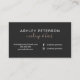 An elegant modern, stylish makeup artist business card with elegant modern simple hand lettering style typography in rose gold on a fgrey backgound. all text is customizable, add your social media.