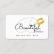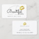 The simplicity of an elegant, delicate and feminine white monogrammed contact card with faux gold lips, and with fields for name and initial (script Sacramento font-style), profession, business-name and additional information (address, phone-number and email)... ideal for beauty salons, makeup artists, cosmetology supplies ...