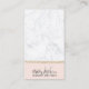 An elegant modern, stylish makeup artist and hair business card with elegant modern simple hand lettering style typography on white marble color block, light gold glitter brushstroke , blush pink color block. all text is customizable, add your social media.