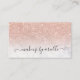 An elegant modern, stylish makeup artist business card with elegant modern simple hand lettering style typography in white on a faux rose gold glitter andwhite marble trendy and elegant background. all text is customizable, add your social media.