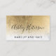 An elegant modern monogram , stylish makeup artist business card with elegant modern simple hand lettering style typography in white on a faux chic yellow gold foil metallic and white marble trendy and elegant background. all text is customizable, add your social media.