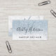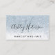 An elegant modern monogram , stylish makeup artist business card with elegant modern simple hand lettering style typography in white on a faux ice blue glitter and white marble trendy and elegant background. all text is customizable, add your social media.