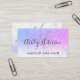 An elegant modern monogram , stylish makeup artist business card with elegant modern simple hand lettering style typography in white on a faux purple pink ombre glitter andwhite marble trendy and elegant background. all text is customizable, add your social media.