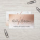 An elegant modern monogram , stylish makeup artist business card with elegant modern simple hand lettering style typography in white on a faux rose gold foil metallic andwhite marble trendy and elegant background. all text is customizable, add your social media.