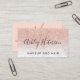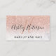 An elegant modern monogram , stylish makeup artist business card with elegant modern simple hand lettering style typography in white on a faux rose gold glitter andwhite marble trendy and elegant background. all text is customizable, add your social media.