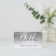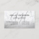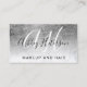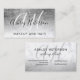 An elegant modern monogrammed double letters , stylish makeup artist business card with elegant modern simple hand lettering style typography in white on a faux silver foil metallic and white marble trendy and elegant background. all text is customizable, add your social media.