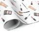 This wrapping paper features Destei's illustrated pattern of various kind of makeup products. These makeup products include palettes, powder with mirror, makeup brushes, lipstick, lip gloss, foundation and mascara.