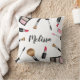 This pillow is great for people who like makeup and the beauty industry. This pillow features Destei's makeup products illustration including lipstick, makeup brushes, palettes, lip gloss and mascara. The makeup items are placed around the pillow leaving space in the middle for a personalized name.