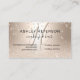 An elegant modern monogram , stylish makeup artist business card with elegant modern simple hand lettering style typography in white on a faux chic gold glitter confetti and metallic gold foil trendy and elegant background. all text is customizable, add your social media.