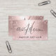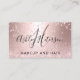An elegant modern monogram , stylish makeup artist business card with elegant modern simple hand lettering style typography in white on a faux rose gold glitter confetti and metallic rose gold foil trendy and elegant background. all text is customizable, add your social media.