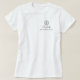 Present your best self to your clients. Your personalized employee name in black handwritten script typography and business logo overlay a white (or other light colored) t-shirt. Personalize with your logo, and your name/ business/specialty on the front. The back sports your personal logo and your chosen saying/tag line or other copy of your choice. Makes a chic and stylish statement that will smartly showcase your business in a professional manner. Matching business cards are also available.