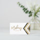An elegant modern, stylish makeup artist business card with elegant script hand lettering style typography in faux gold with a faux gold glitter, foil, black and white marble triangle chevron stripe color block on black and white colors background. If you need any customization, don't hesitate in contacting me