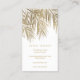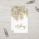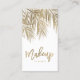 An elegant modern, stylish makeup artist business card with elegant script hand lettering style typography with gold frame on a faux gold palm tree leaf on customizable white