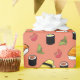 Tasty looking gift wrapping paper that'll make you hungry just by looking at it! It features different kinds of sushi, like tamago nigiri and cucumber maki (yum!). Around the sushi is stylized wasabi and ginger, because no sushi meal is complete without it.