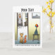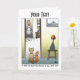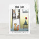 A card with a cute and funny cartoon about a cat telling a dog to make his owner beg for a change. The image, background and text can be personalized. Original artwork by DB Cartoons.