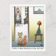 A card with a funny cartoon about a cat telling a dog to make his owner beg for a change. The background, image and text are personizable. Original artwork by DBcartoons.