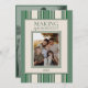 Send holiday greetings with this Making Spirits Bright Two Photo Stripe Holiday Card! This design features a simple, green stripe background with a color photo option on the front and a black and white photo option on the back. Personalize with your family's name and personal season greeting. Have a custom request? Message me!