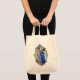 The printing came out very well, better than I had anticipated. The natural color fabric is sturdy with strong seams and comfortable handles. This tote fits easily over my shoulder. As it is filled, the bottom flattens out--very cool! I would buy this product again. This grocery tote holds a lot of groceries! The image quality was very good. The colors were a little darker than I had expected. The darkness may have been due to printing on a natural color fabric rather than on white. The cat design is attractively centered on the tote. The spirit of the design is very lively, just as it appears on the Zazzle website.