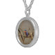 I chose gold plated so that the metal would not react with my skin oils and perspiration. But, I changed the necklace from the gold plated one to a sterling silver. My skin cells will tarnish the silver. But it will not look as bad if some portion of the gold plated necklace somehow became compromised. Zazzle did a find job turning the picture into a pendant for me. As you can see, the colors and the printing of the final product, match the preview. The picture I took is not very clear. But I am pleased with the product I received.