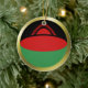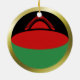Both sides of this ornament feature the flag of Malawi morphed into a circle with a golden rim. Simple Malawian decoration for your home.