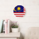 The Malaysian flag is a flag with fourteen horizontal stripes and in the left corner a blue field with a crescent and a 14-point star. The used colors in the flag are blue, red, yellow, white. The proportion of the Malaysian flag is 1:2. The Flag of Malaysia was adopted in 1950. The first use of the current flag design was in 1950. The last change to the current Malaysian flag design was in 1963.