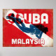 Malaysia scuba diving design. A vintage style retro red scuba flag background with navy blue scuba diver.