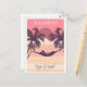 Anyone would love to receive this pink vintage travel postcard featuring a retro illustration of a woman on a beach in the Maldives!