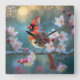Male Cardinal in the Moonlight Cherry Blossoms Square Wall Clock
