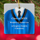 Personalized double-sided graduation keepsake ornament, decorated in blue and black school gown colors and necktie for that special male senior. Many other color combinations available for males and females. Edit custom text on front and back in the easy Zazzle text editor.