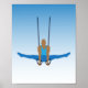 Powerful illustration of a male gymnast balancing on the steady rings. On a blue fading background. Superb poster for gymnastics clubs, sports centres, and colleges.