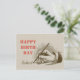 Postcard inspired by old-time office work. A clerk's hand holding a fountain pen has just finished writing the word 'Robert' (the name of the person that is going to have birthday). There is also the text of the birthday greeting (Happy Birthday) in red capital letters, chosen to look a little as if they had been produced by a rubber stamp. Both texts can be customized simply by typing over the example text underneath the 'Edit this design template' heading.