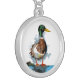 colorful watercolor artwork of a male mallard duck with a green head and brown feathers on a necklace.