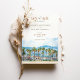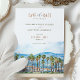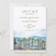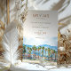 The elegant typography in earthy hues complements the watercolor scene, setting the tone for a romantic, sun-soaked wedding day. Ideal for couples planning a wedding in Malibu or anywhere along the California coast, this card offers a blend of natural beauty and artistic style.