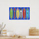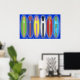 Malibu Beach, it's a way of life. Six colorful surfboards on blue ocean sea spray depicting the Southern California lifestyle of sand, sea, and surf. Fun at the seaside with this unique, summer colorful Malibu Beach surfboards design. Enjoy the Californian image and lifestyle anywhere by hanging this original from the Golden State by the Pacific Ocean.