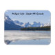 Snow covered Rocky mountains peaks reflected on the half frozen Maligne lake - Jasper national park, Alberta, Canada. The shot was taken in late spring.