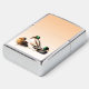 This Zippo Lighter features an artistic rendering of three Mallard Ducks perched on a pale orange gradient background. The male ducks can be identified by their iridescent green heads and yellow beaks. The females have lovely feathers in shades of brown and gold with orange beaks.