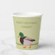 Add your own message to create custom party supplies for birthday parties and other special events. These paper cups feature a realistic style illustration of a male mallard duck set against a pale green background with your text in olive green colored lettering.