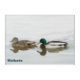 Two Mallard ducks, a drake and a female, swim together in an Alaskan pond. Customizable text reading "Mallards" also appears. The Mallard, Anas platyrhynchos, breeds throughout the temperate and subtropical Americas, Europe, Asia, and North Africa, and has been introduced to New Zealand and Australia. Male birds have a bright green or blue head, while the female's is light brown. The gregarious Mallard lives in wetlands and eats water plants. The Mallard is the ancestor of most domestic ducks. The Mallard was one of the many bird species originally described by Linnaeus in his 18th century work, Systema Naturae, and still bears the first binomial name it was given. The name is derived from the Old French malart or mallart "wild drake", although its ultimate derivation is unclear. It may be related to an Old High German masculine proper name Madelhart, clues lying in the alternate English forms "maudelard" or "mawdelard." Mallards frequently interbreed with their closest relatives in the genus Anas, such as the American Black Duck, and also with species more distantly related, for example the Northern Pintail, leading to various hybrids that may be fully fertile. This is quite unusual, and indicates that the Mallard evolved very rapidly during the Late Pleistocene. Mallards appear to be closer to their Indo-Pacific relatives than to their American ones judging from biogeography. Considering mtDNA D-loop sequence data, they may have evolved more probably than not in the general area of Siberia; Mallard bones rather abruptly appear in food remains of ancient humans and other deposits of fossil bones in Europe, without a good candidate for a local predecessor species.The large ice age paleosubspecies which made up at least the European and west Asian populations during the Pleistocene has been named Anas platyrhynchos palaeoboschas. The Mallard is 20–26 inches long (of which the body makes up around two-thirds), has a wingspan of 32–39 inches, and weighs 1.6–3.5 lbs. The size of the Mallard varies clinally, and birds from Greenland, although larger than birds further south, have smaller bills and are stockier. It is sometimes separated as subspecies, the Greenland Mallard (A. p. conboschas).The Mallard is a rare example of both Allen's Rule and Bergmann's Rule in birds. Bergmann's Rule, which states that polar forms tend to be larger than related ones from warmer climates, has numerous examples in birds. Allen's Rule says that appendages like ears tend to be smaller in polar forms to minimize heat loss, and larger in tropical and desert equivalents to facilitate heat diffusion, and that the polar taxa are stockier overall. Examples of this rule in birds are rare, as they lack external ears. However, the bill of ducks is very well supplied with blood vessels and is vulnerable to cold. Breeding males are unmistakable, with a bright bottle-green heads, a black rear end and a yellowish orange (can also contain some red) bill tipped with black (as opposed to the black/orange bill in females). They have a white collar which demarcates the head from the purple-tinged brown breast, grey brown wings, and a pale grey belly. The dark tail has white borders. The female Mallard is a mottled light brown, like most female dabbling ducks, and has buff cheeks, eyebrow, throat and neck with a darker crown and eye-stripe. Upon hatching, the plumage coloring of the duckling is yellow on the underside and face (with streaks by the eyes) and black on the backside (with some yellow spots) all the way to the top and back of the head. Its legs and bill are also black. As it nears a month in age, the duckling's plumage will start becoming drab, looking more like the female (though its plumage is more streaked) and its legs will lose their dark grey coloring. Two months after hatching, the fledgling period has ended and the duckling is now a juvenile. Between three to four months of age, the juvenile can finally begin flying as its wings are fully developed for flight (which can be confirmed by the sight of purple speculum feathers). Its bill will soon lose its dark grey coloring and whether it is male or female can finally be distinguished by three factors. The bill coloring is yellow in males, black and orange for females. The breast feathers are reddish-brown for males, brown for females. The center tail feather of male birds (called a drake feather) is curved; females have straight feathers. During the final period of maturity leading up to adulthood (6–10 months of age), the plumage of female juveniles remains the same while the plumage of male juveniles slowly changes to its recognizable colors. This plumage change also applies to adult Mallard males when they transition in and out of their non-breeding (eclipse) plumage at the beginning and the end of the summer moulting period. The adulthood age for Mallards is 14 months and the average life expectancy is 20 years. A noisy species, the male has a nasal call, and a high-pitched whistle, while the female has a deeper quack stereotypically associated with ducks. The Mallard is widely distributed across the Northern Hemisphere, North America from southern and central Alaska to Mexico, the Hawaiian Islands, and across Eurasia, from Iceland and southern Greenland and parts of Morocco (North Africa) in the west, Scandinavia to the north, and to Siberia, Japan, and China in the east. It is strongly migratory in the northern parts of its breeding range, and winters farther south. For example, in North America it winters south to Mexico, but also regularly strays into Central America and the Caribbean between September and May. The Mallard inhabits a wide range of habitat and climates, from Arctic Tundra to subtropical regions. It is found in both fresh- and salt water wetlands, including parks, small ponds, rivers, lakes and estuaries, as well as shallow inlets and open sea within sight of the coastline. They are attracted to bodies of water with aquatic vegeta